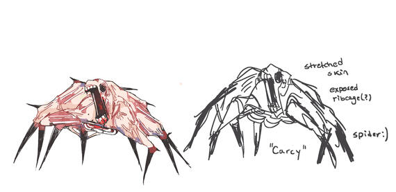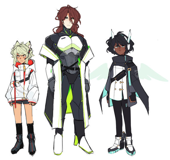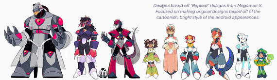 Shown here are all characters I've personally designed, or characters from existing properties that I've designed new outfits / appearances for. Warning for approaching gore + body horror.